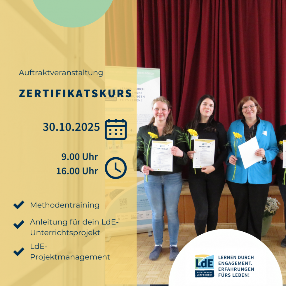 Datum 30. Oktober 2025Zeit 9:00 - 16:00Veranstaltungsort Waren MüritzVeranstalter Kompetenzzentrum Lernen durch Engagement M-V