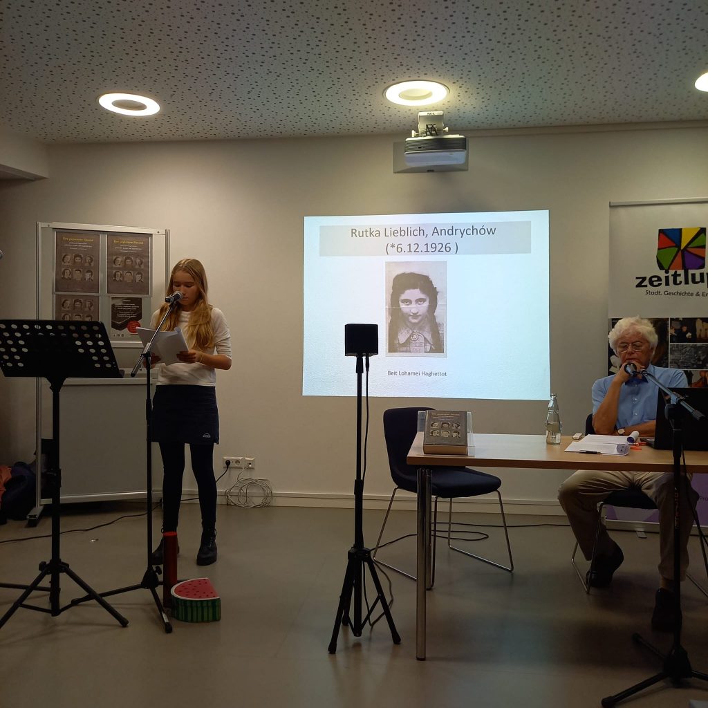 Wie nahmen jüdische Jugendliche im Zweiten Weltkrieg im besetzten Polen, Litauen und der Ukraine die Vernichtung der jüdischen Bevölkerung durch deutsche Besatzer wahr? Und welchen Platz konnten Themen wie Liebe, Freundschaft und Erwachsenwerden in dieser Zeit einnehmen? Am Mittwoch, den 20.09.2023 richtete die Geschichtswerkstatt zeitlupe der RAA M-V in Kooperation mit der Regionalbibliothek Neubrandenburg eine spannende und emotionale Lesung aus. Dr Wolf Kaiser, langjähriger Leiter der Pädagogischen Abteilung der Gedenkstätte Wannsee-Konferenz, stellte dabei sein Werk “Der Papierene Freund. Holocaust-Tagebücher jüdischer Kinder und Jugendlicher” vor und wurde von Schüler*innen der Evangelischen Schule aus Neubrandenburg und Holger Mieth unterstützt. Dr. Wolf Kaiser berichtete von den Anfängen seiner Recherche und berichtete teilweise Unglaubliches über die vielen erhalten gebliebenen Tagebücher und die in Ihnen verborgenen Lebensgeschichten. Dank dieser Zeugnisse bleibt die Geschichte von der Vernichtung jüdischer Menschen im östlichen Europa durch die deutschen Besatzungsregime in Polen, Litauen, und anderen besetzten Staaten im Zweiten Weltkrieg unvergessen. Dafür braucht es auch weiterhin das aktive Erinnern der Worte der Kinder und Jugendlichen in Warschau, Kaunas und der Ukraine.