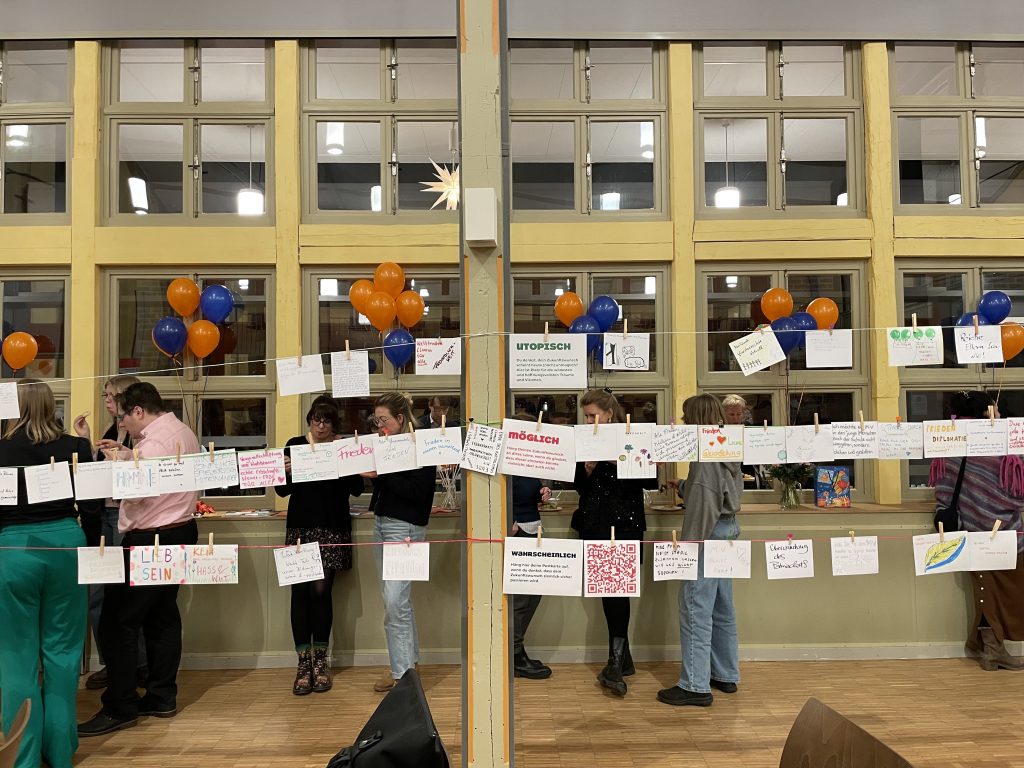 Nach Grußworten von Jugendministerin Stefanie Drese, einem Impulsvortrag von Eric Klausch sowie einem offenen Austausch lud das Projekt FutureFlow die Teilnehmenden dazu ein, ihre persönlichen Zukunftsvisionen zu formulieren. Auf Postkarten – adressiert an die Zukunft – hielten sie ihre Wünsche, Hoffnungen und Ideen fest. Die Postkarten dienten als Ausgangspunkt für vertiefende Gespräche über gemeinsame Visionen, unterschiedliche Perspektiven, Umsetzungsmöglichkeiten und konkrete Handlungswege. Ganz im Sinne des französischen Philosophen Bernard Stiegler, der schreibt: „Um heute Politik zu machen, müssen wir träumen.“ Es gelte, unsere individuellen Träume sichtbar zu machen, zu teilen und daraus gemeinsame Visionen zu entwickeln – als Grundlage für konkretes Handeln. So entstanden spannende und mutige Ideen, die Impulse für gerechte und wünschenswerte Zukünfte setzten.