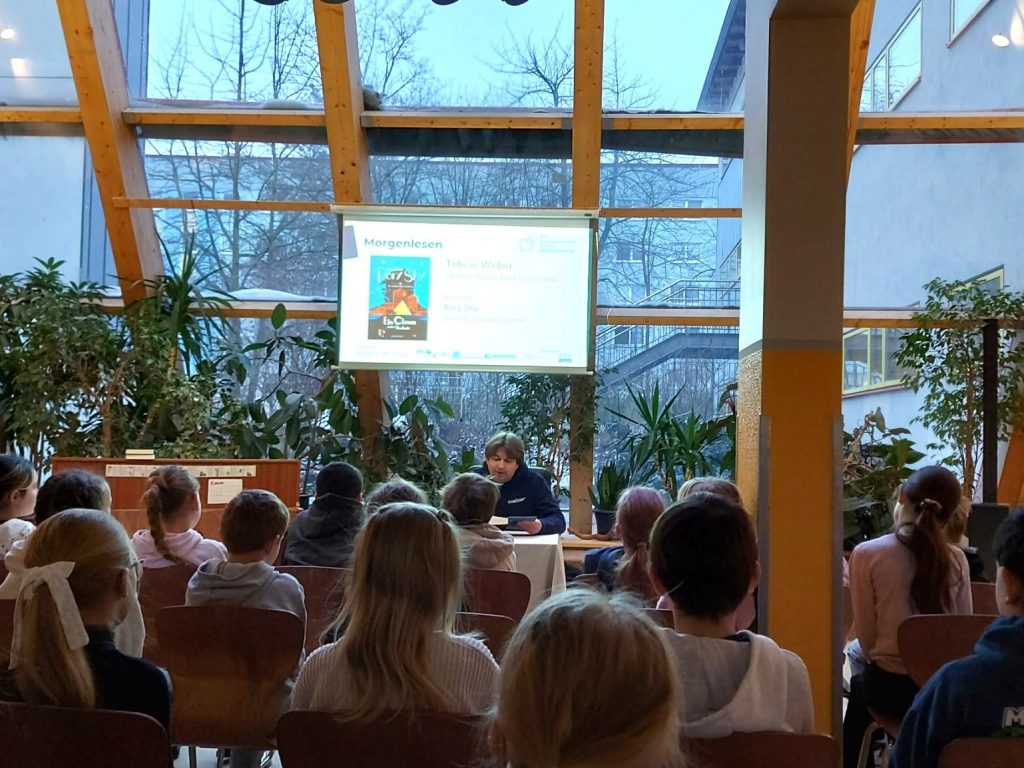 Am vergangenen Mittwoch durfte die Grundschule Tobias Weber zum Start in den Schultag begrüßen. Tobias Weber ist CEO von Weber Food Technology, einem mittelständischen Maschinenbauunternehmen mit Sitz u. a. in Neubrandenburg, das professionelle Slicer für Wurst- und Käsewaren entwickelt, herstellt und weltweit vertreibt. Er folgte der Einladung der Pädagogischen Werkstatt und las den Kindern der 3. Klassen aus seinem Lieblingsvorlesebuch vor.