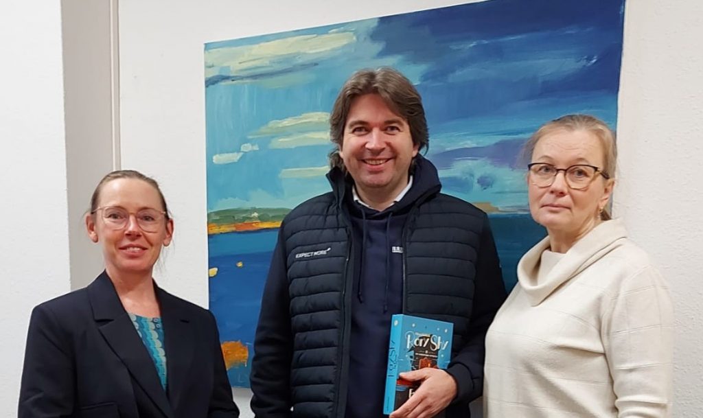 Die Begeisterung war groß – sowohl für die Geschichte als auch für den besonderen Gast selbst. Denn der nahm mit einem kurzen Film erst einmal alle Anwesenden mit in seine Werkshalle und zeigte, was für Maschinen sein Unternehmen herstellt. So bekamen die Kinder einen anschaulichen und spannenden Einblick in moderne Technik, internationale Arbeitswelten und einen ganz besonderen Beruf. Im Anschluss wurde es dann gemütlich: Vorgelesen wurde aus „Rory Shy – Der schüchterne Detektiv“ von Oliver Schlick. Gebannt lauschten die Kinder der Geschichte bzw. dem Vorleser – ein schönes Beispiel dafür, wie Literatur fesseln, zum Lachen bringen und die Fantasie anregen kann.