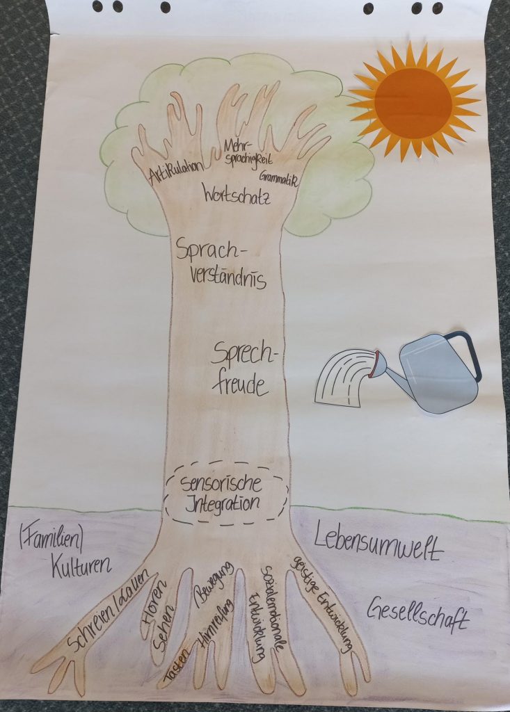 Zum Abschluss des Tages resümierten die Fachkräfte die Inhalte der Veranstaltung und stellten einander ihre Ideen und Umsetzungsimpulse vor, die sie in die zukünftige Gestaltung ihres pädagogischen Alltags mitnehmen. Es wurde deutlich, dass die Offenheit gegenüber sprachlicher und familiärer Vielfalt und deren Einbeziehung in die pädagogische Praxis enorm wichtige Ressourcen für die frühkindliche Bildung darstellen.