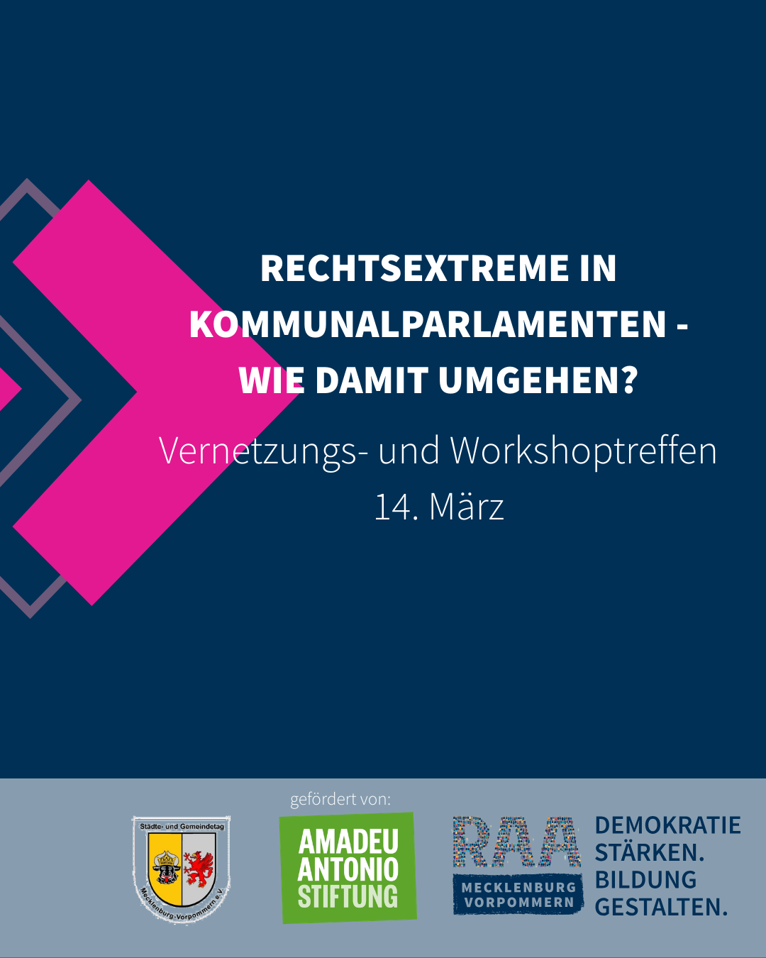Einladung „Wie umgehen mit Rechtsextremen in Kommunalparlamenten?“ – unter dieser Leitfrage laden wir, die RAA – Demokratie und Bildung Mecklenburg-Vorpommern e. V., Sie zu einem Vernetzungs- und Workshoptreffen ins Schloß […]