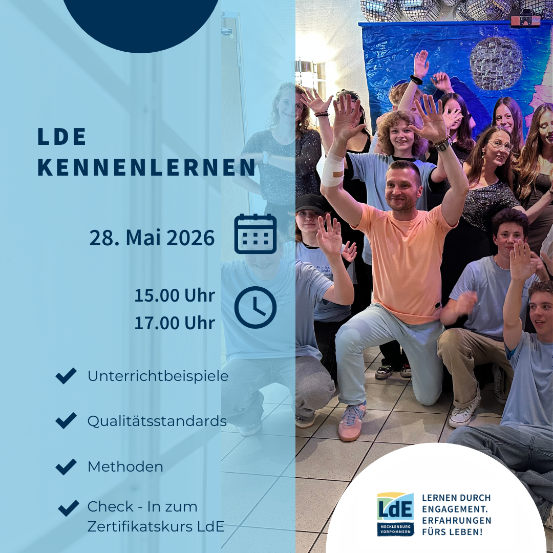 Regionale Schule "Werner von Siemens" Schwerin Rahlstedter Straße 3A, Schwerin, M-V, GermanyWir laden Sie herzlich zum Festakt ein. Anlässlich der Unterzeichnung der Kooperationsvereinbarung 2026/2027 für das Kompetenzzentrum Lernen durch Engagement Mecklenburg‑Vorpommern (LdE M‑V) wollen wir Danke sagen für das Engagement aller […]